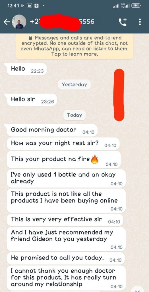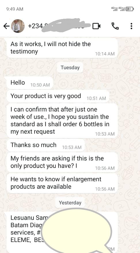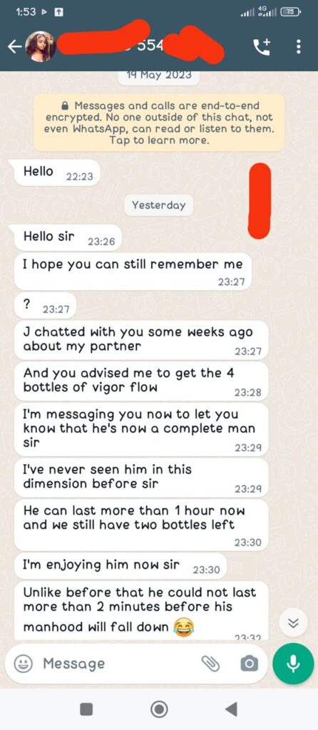 Can’t tell you how thrilled I am Dr. I started using this product for few days and now I want my wife all the Time and my performance on bed is fantastic, plus my stamina now is as if this product takes me back to my youth! I hardly torched my wife before but as it is. now, I’m telling you I feeling going home to her now. this hasn’t happened for a long time Dr. Thank you so much.